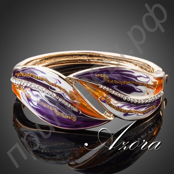 Это чудесное украшение имеет достаточно крупный размер и яркий дизайн, поэтому его лучше всего сочетать с простыми платьями, которые «заиграют» по-новому благодаря этому браслету. Широкий корпус изделия покрыт чудесной масляной росписью, в которой завораживающий фиолетовый оттенок дополняется белыми и оранжевыми вкраплениями. Чистый блеск прозрачных австрийских кристаллов Stellux и неповторимая теплота позолоты делают этот браслет шикарным и изысканным, поэтому надевшая его дама будет исполнена уверенности в себе в течение каждого выхода в свет.