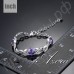 Это превосходное украшение представляет собой изысканное плетение со сказочными мотивами, украшенное россыпью прозрачных кристаллов. Главными декоративными элементами данного браслета являются три завораживающих фианита глубокого фиолетового цвета. Эти камни имеют правильную квадратную форму, которая оттеняет сложность плетения корпуса браслета.