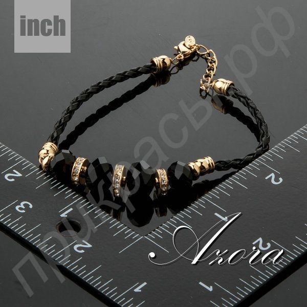 Это удивительное украшение представляет собой изысканное соединение дорогого сияния золота и лаконичного звучания черного цвета. Такое сочетание оттенков полностью отвечает канонам классики, поэтому предлагаемый браслет прекрасно подойдет для украшения любых образов. Изюминку в его дизайн вносит необычная форма изделия: этот браслет имеет плетеный корпус, на который нанизаны несколько золотых колец и черных кристаллов. Оригинальность дизайна данного украшения делает его идеальным для ярких образов для рок-вечеринок или концертов. Предлагаемый браслет также может стать отличным подарком для любимой девушки, с помощью которого мужчина сможет показать свое восхищение ее красотой и экстравагантностью.