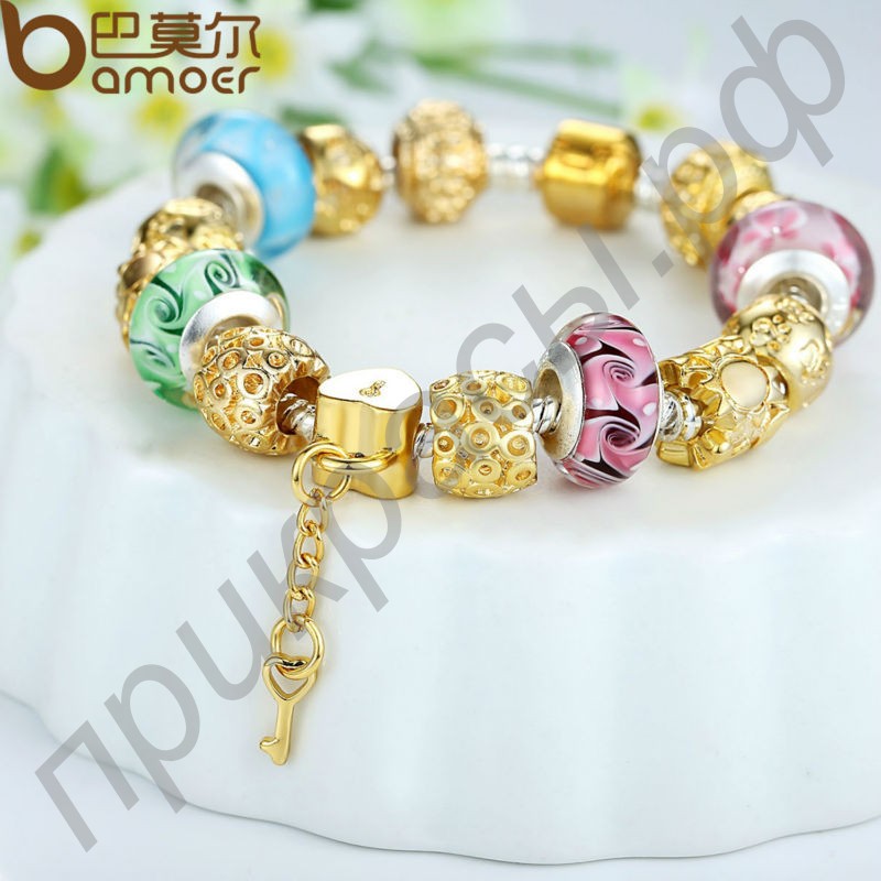 Привычный повседневный наряд зазвучит по-новому, если расставить более смелые и яркие акценты. Таким новым дополнением может стать ультрамодный позолоченный женский браслет с бусинами из цветного муранского стекла. Здесь скомбинированы разные декоративные элементы, которые в сочетании создали самобытный и яркий аксессуар, адресованный современной леди.