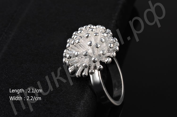 Корпус колечка имеет среднюю ширину, он покрыт удивительным серебром, завораживающим своим магическим блеском. Данное колечко выполнено в виде одуванчика, лучи которого сделаны из поразительных кристаллов. Сквозь эти непревзойденные камешки чудесно проходят лучи света, а дополнение кончиков серебряными шапочками придает дизайну изделия действительно ослепительный вид.