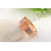 Корпус данного кольца достаточно широк и покрыт ослепительной розовой позолотой. В его центре сияет необычный квадратный камешек удивительного оранжевого оттенка, мягкость которого выгодно выделяется на фоне золотого сияния. Вокруг камешка расположены две полосы из прозрачных круглых кристаллов, чистота их блеска облегчает композицию украшения и делает ее более изысканной.