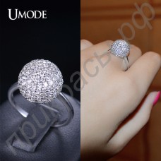 Это потрясающее украшение имеет небольшой толщины корпус из прочного цинкового сплава, стойкого к возможным деформациям и повреждениям. Его поверхность покрыта чудесной белой позолотой, удивительное сияние которой превосходно сочетается с неповторимой красотой швейцарских фианитов, усеявших большой шар. Именно этот сияющий шар стал главным украшением кольца. Его простая форма подчеркивает прямоту характера дамы и ее целеустремленность, а потрясающие камни показывают желание представительницы прекрасного пола выглядеть ярко, стильно и заметно.