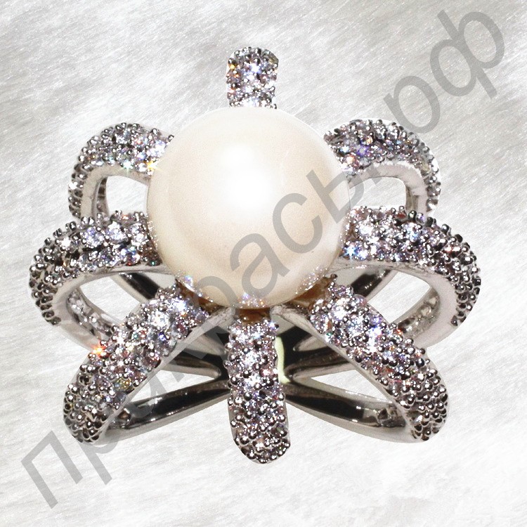 Предлагаемая модель имеет достаточно крупный размер, поэтому оно сможет выполнить функцию ключевого аксессуара к облику очаровательной дамы. Оригинальность формы изделия заключается в том, что оно напоминает осьминога с множеством щупальцев, покрытых невероятным количеством прозрачных фианитов. С их чудесным блеском переплетается холодный оттенок позолоты. В центре же этого потрясающего украшении сияет большая бусина, поэтому кажется, что осьминог оберегает настоящее сокровище.Перламутровый блеск данной бусины придаст женственности и загадочности облику непревзойденной дамы, которая станет истинной королевой каждого мероприятия.