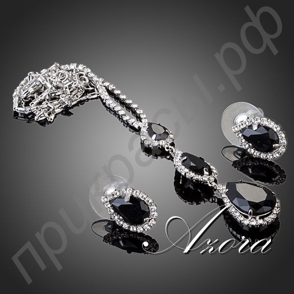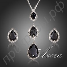Неповторимая красота этого набора привлечет к представительнице прекрасного пола восхищенные взгляды окружающих мужчин и сделает ее истинной королевой вечера. Серьги и кулон из предлагаемого комплекта украшены чудесными швейцарскими фианитами загадочного черного оттенка. На каждой из серег расположился один камень в форме капли воды, а кулон дополнен сразу тремя фианитами. По периметру этих восхитительных камней расположились сияющие прозрачные камни. Контраст глубины черных фианитов и чистого блеска прозрачных камней делает предлагаемый ювелирный комплект поистине неповторимым.