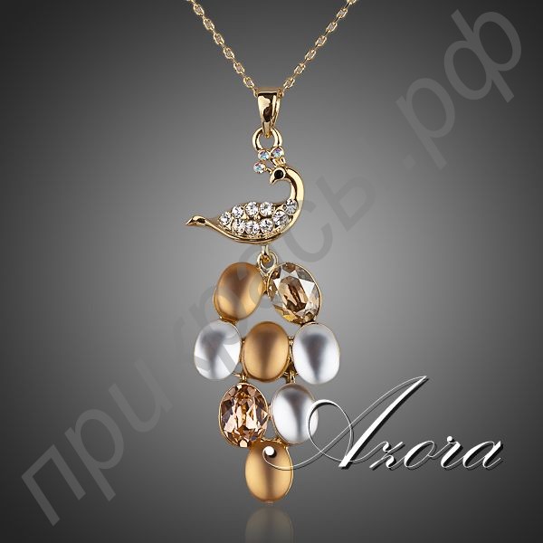 Роскошный хвост павлина сделан из камней и кристаллов, а тело птицы усеяно россыпью мелких прозрачных кристаллов Stellux. Этот удивительный кулон мгновенно привлекает к себе внимание, поэтому надевшая его девушка просто обречена иметь успех у мужчин. В цветовой гамме этого чудесного украшения доминирует золото, покрывающее как обрамление, так и кристаллы. Золото не только придает данному кулону дорогой вид, но еще и своим удивительным сиянием подчеркивает счастливый блеск глаз женщины, оттеняет пленительный цвет ее кожи.